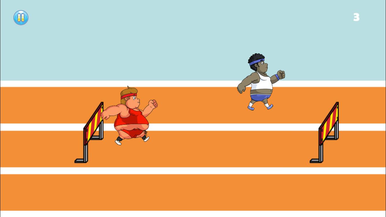 Flabby Bert n'a jamais été du genre à reculer d'un défi, alors il s'est frayé un chemin vers les haies de piste. Avec son ventre potentiel, flasque et gros, traînant de son débardeur, Bert a commencé à courir pour le premier obstacle. Flabby Bert avait surestimé son niveau de forme physique. Avec un fort crash, Flabby Bert a claqué le tout premier obstacle. Même cet échec joufflu embarrassant n'allait pas arrêter Flabby Bert dans sa quête pour être en forme. Hurdle après l'obstacle brisé et Flabby Bert commençait à se mettre sur lui-même.